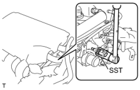 (b) Using SST, tighten the engine coolant temperature sensor.
