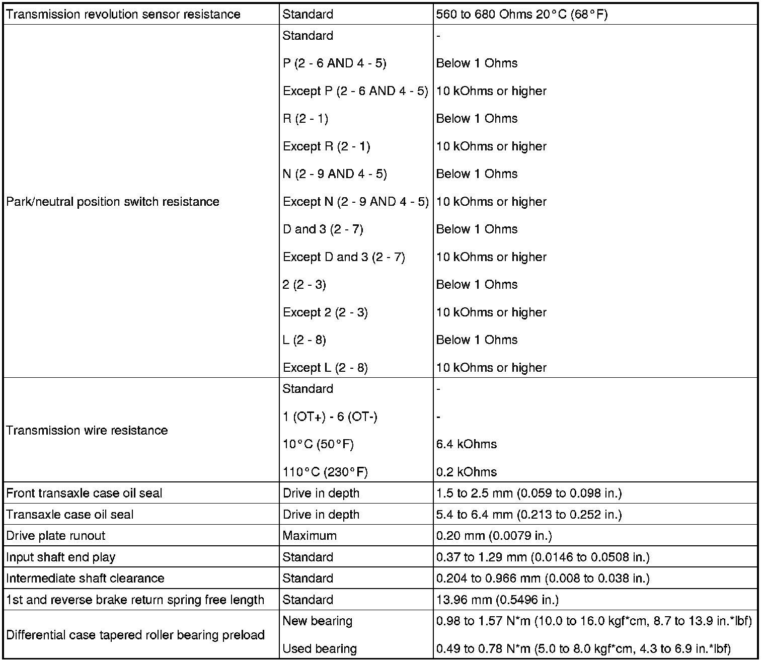 SERVICE SPECIFICATIONS: U340E AUTOMATIC TRANSAXLE: SERVICE DATA