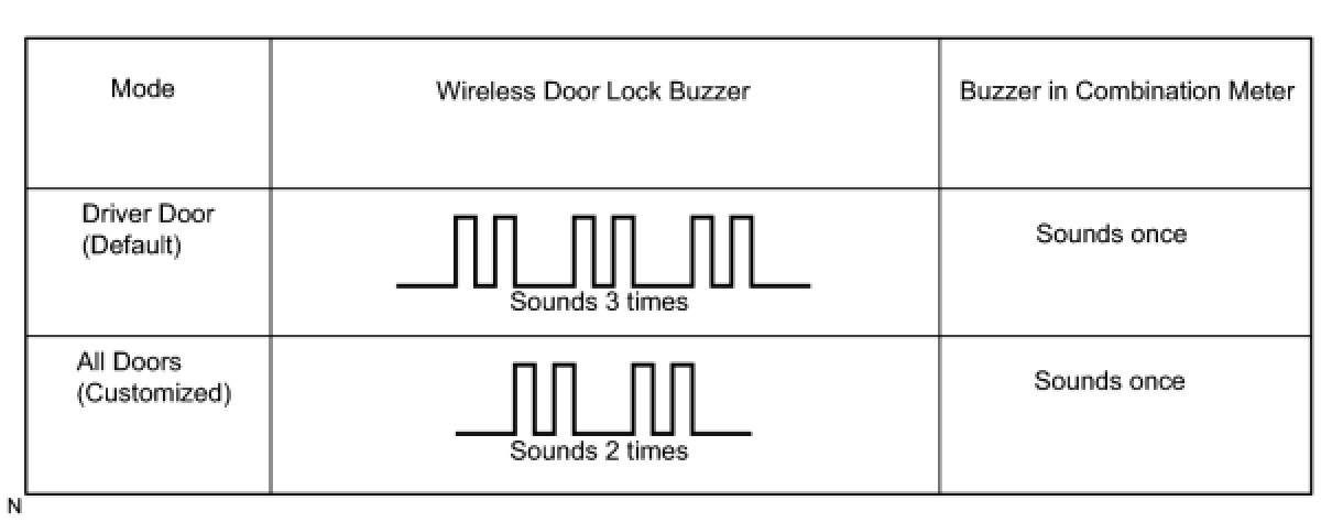 (c) The certification ECU sounds the buzzer of the wireless door lock buzzer and combination meter to inform the user that the mode has been switched.