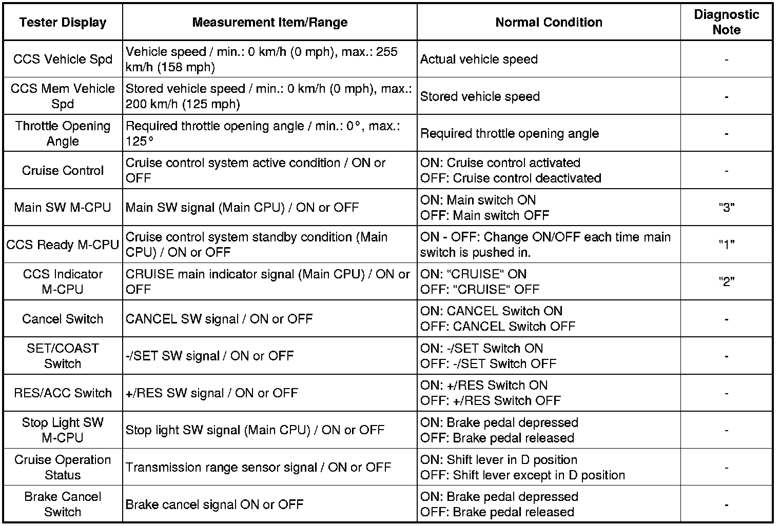 CRUISE CONTROL: CRUISE CONTROL SYSTEM: DATA LIST / ACTIVE TEST