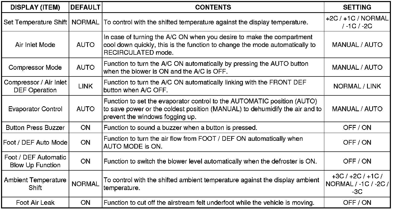 AIR CONDITIONING: AIR CONDITIONING SYSTEM: CUSTOMIZE PARAMETERS