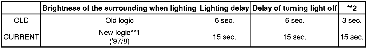 **2: Delay time until the headlight is turned on when the outside suddenly gets dark.
