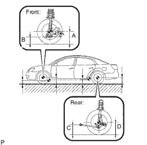 Before inspecting the wheel alignment, adjust the vehicle height to the specified value.