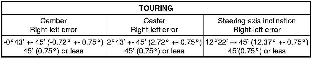 (2) The body and suspension may be damaged if the camber is not correctly adjusted according to the above table.