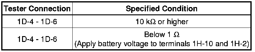 (2) If the result is not as specified, replace the engine room junction block assembly.