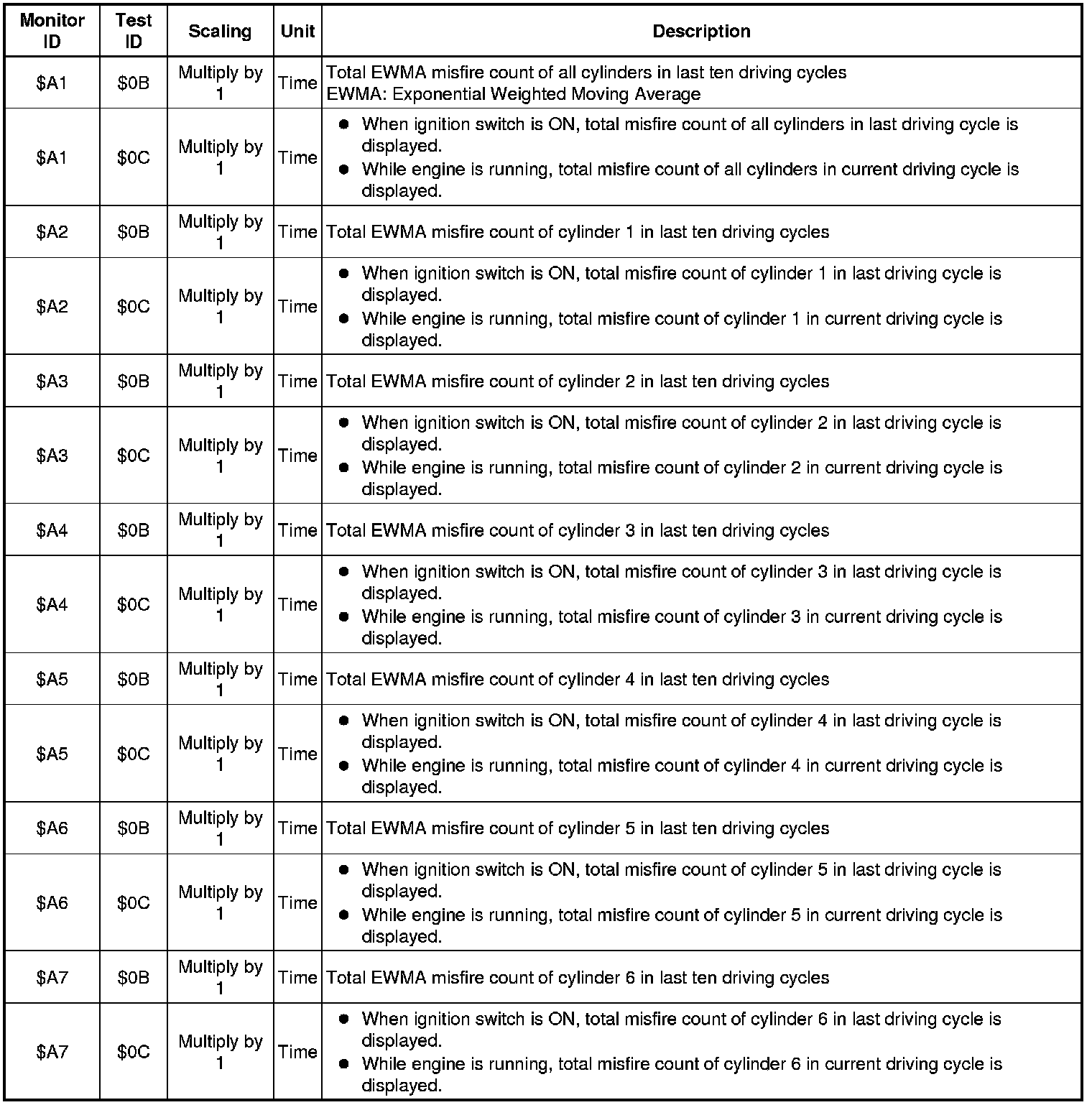 If you use a generic scan tool, multiply the test value by the scaling value listed below.