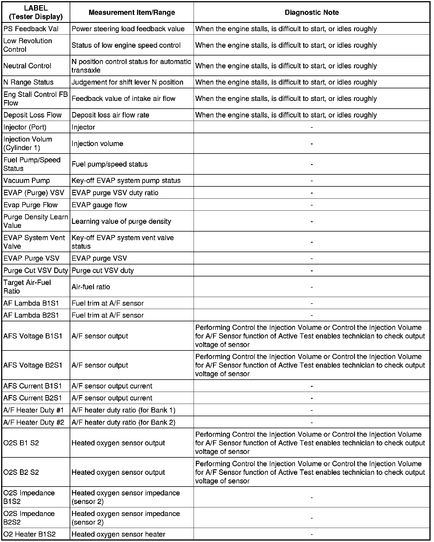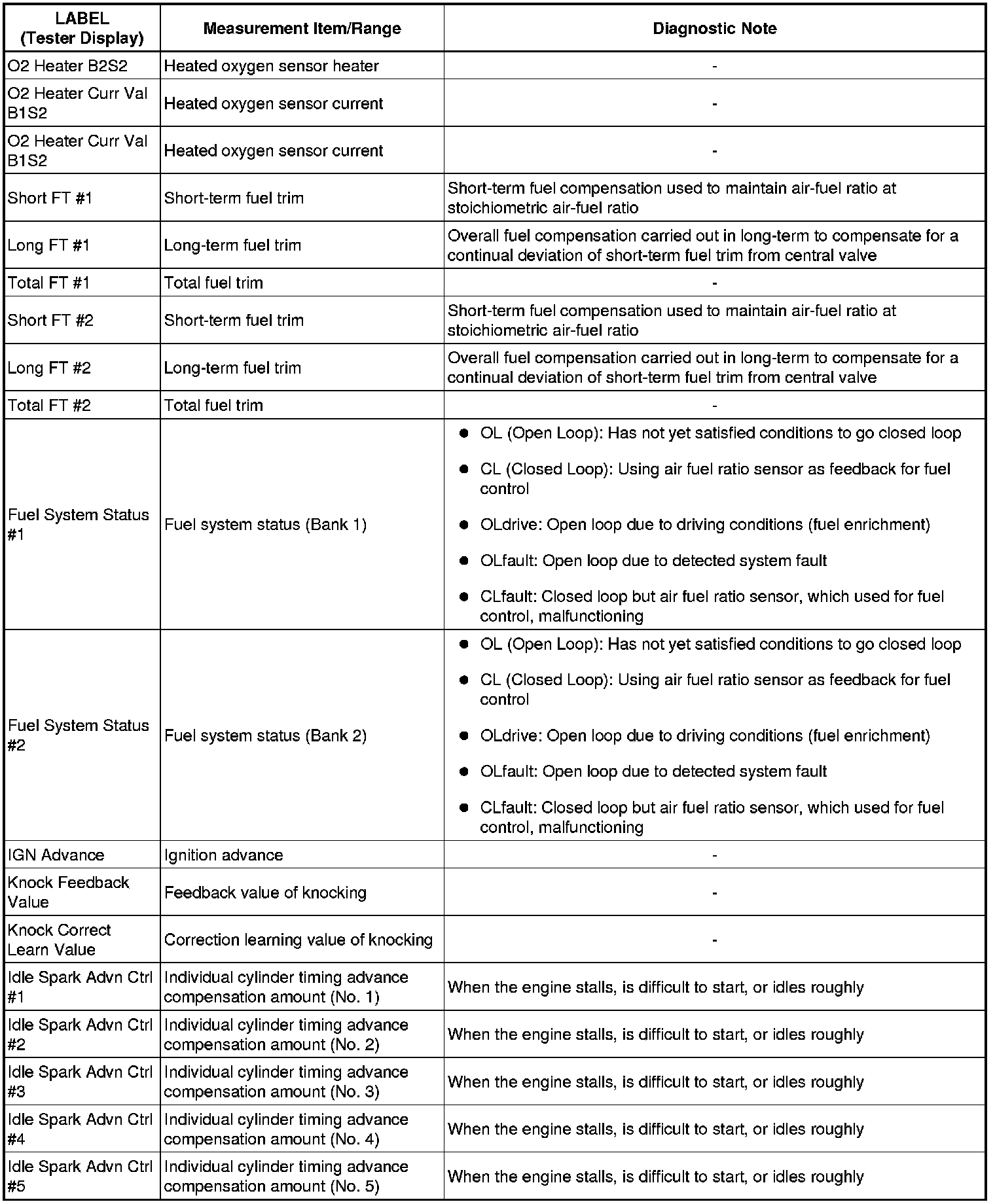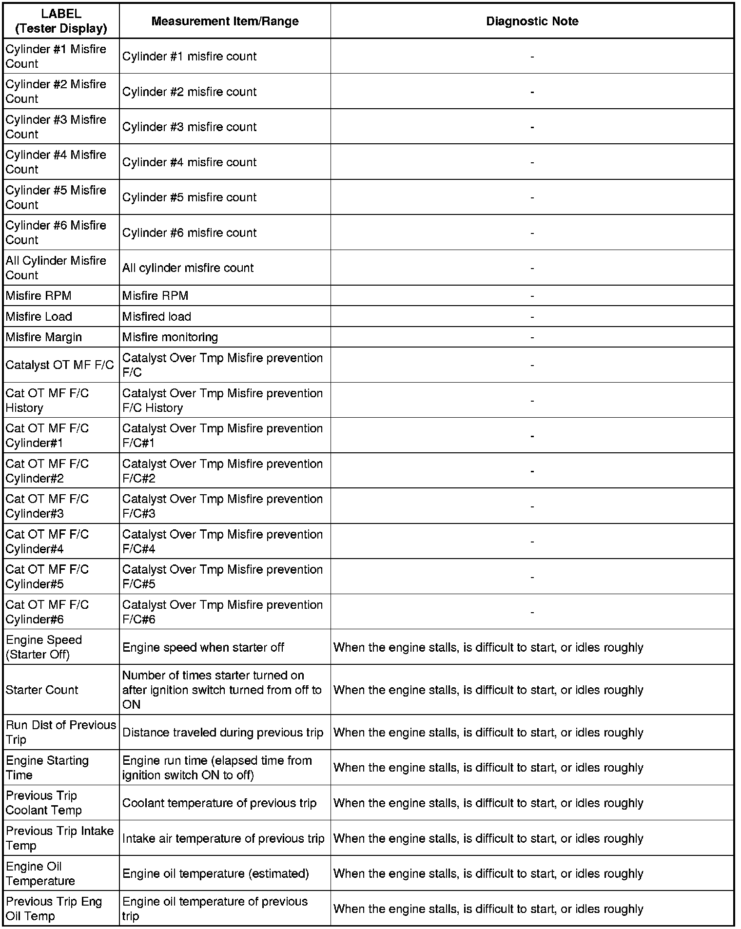 2GR-FE ENGINE CONTROL SYSTEM: SFI SYSTEM: FREEZE FRAME DATA