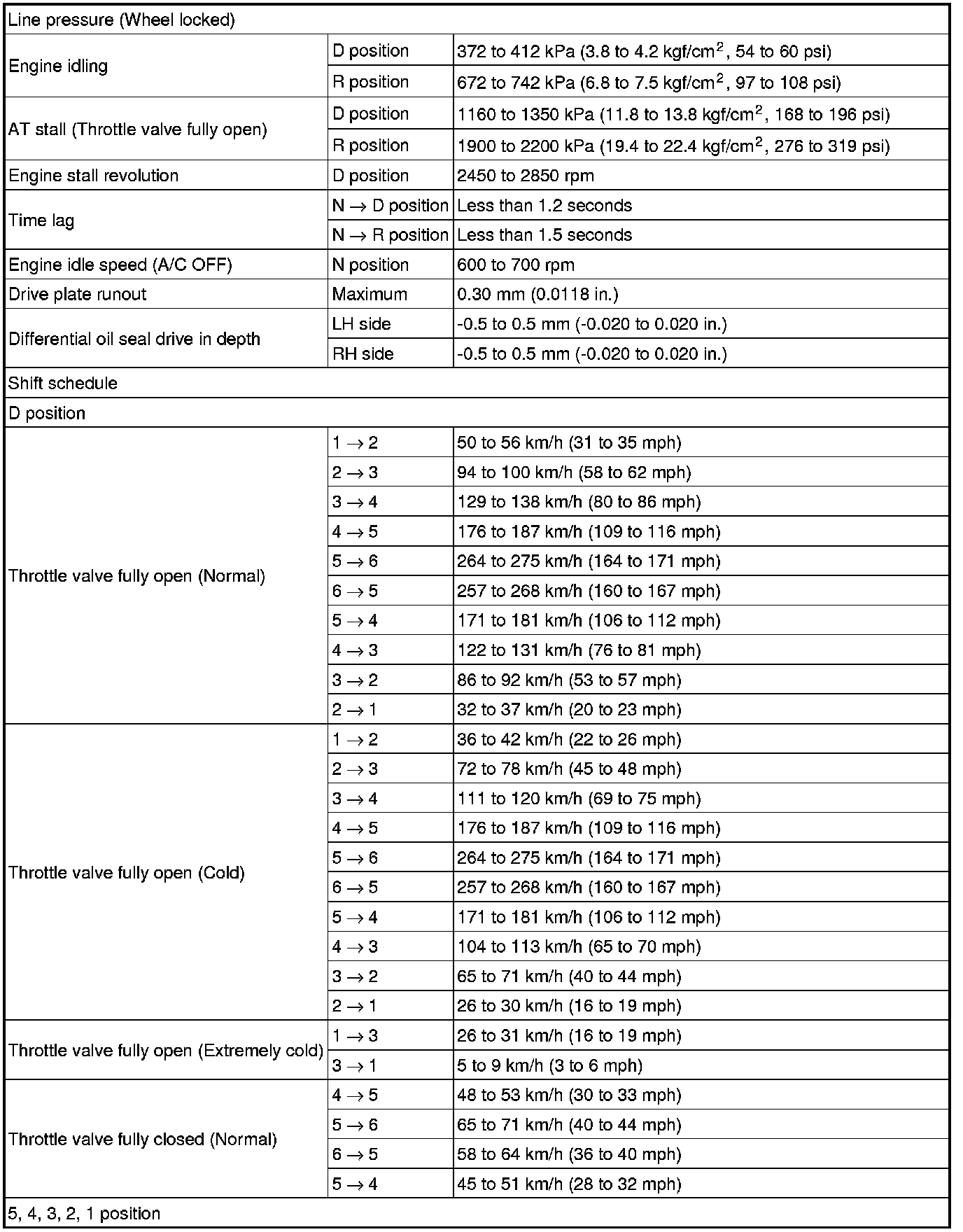 SERVICE SPECIFICATIONS: U660E AUTOMATIC TRANSAXLE: SERVICE DATA