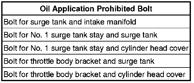 Do not apply oil to the bolts as listed below:
