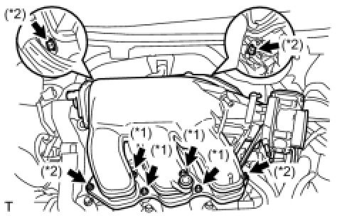 (c) Install the intake air surge tank with the 2 nuts and 2 bolts. (*2)