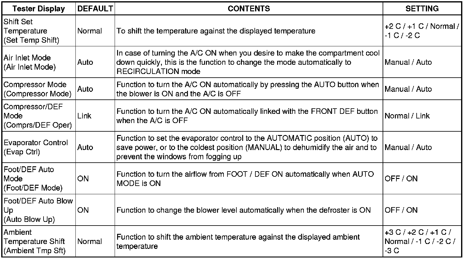 AIR CONDITIONING: AIR CONDITIONING SYSTEM: CUSTOMIZE PARAMETERS