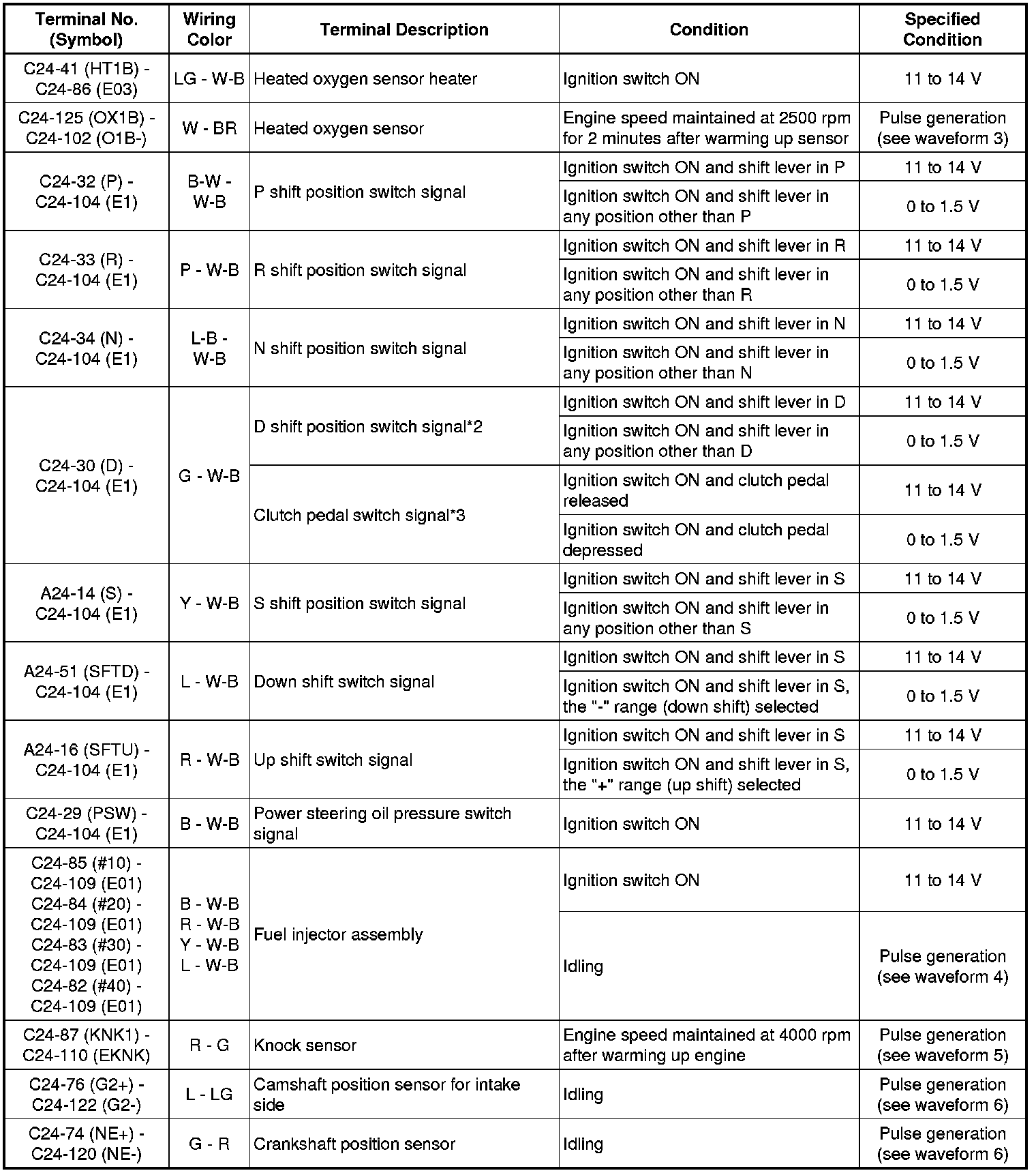 * Depending on the vehicle, the output waveform voltage may rise to 12 V if influenced by optionally installed systems.