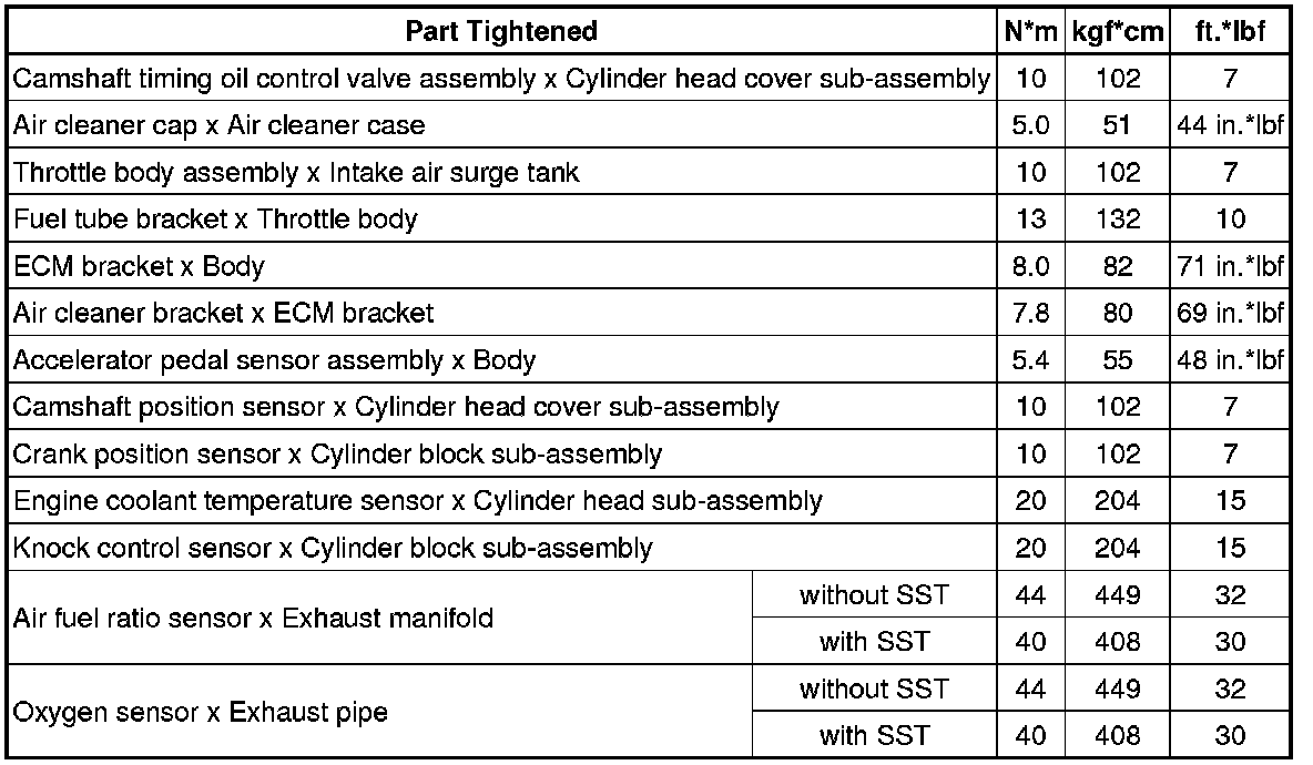 SERVICE SPECIFICATIONS: 2AR-FE ENGINE CONTROL SYSTEM: TORQUE SPECIFICATIONS