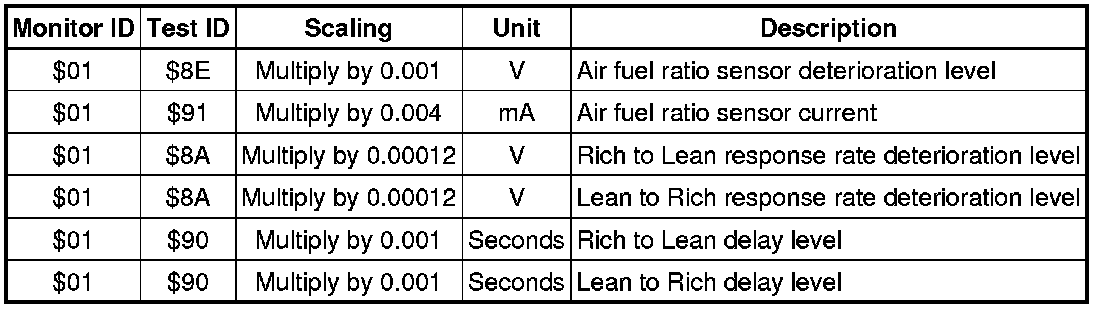 If you use a generic scan tool, multiply the value by the scaling value listed below.