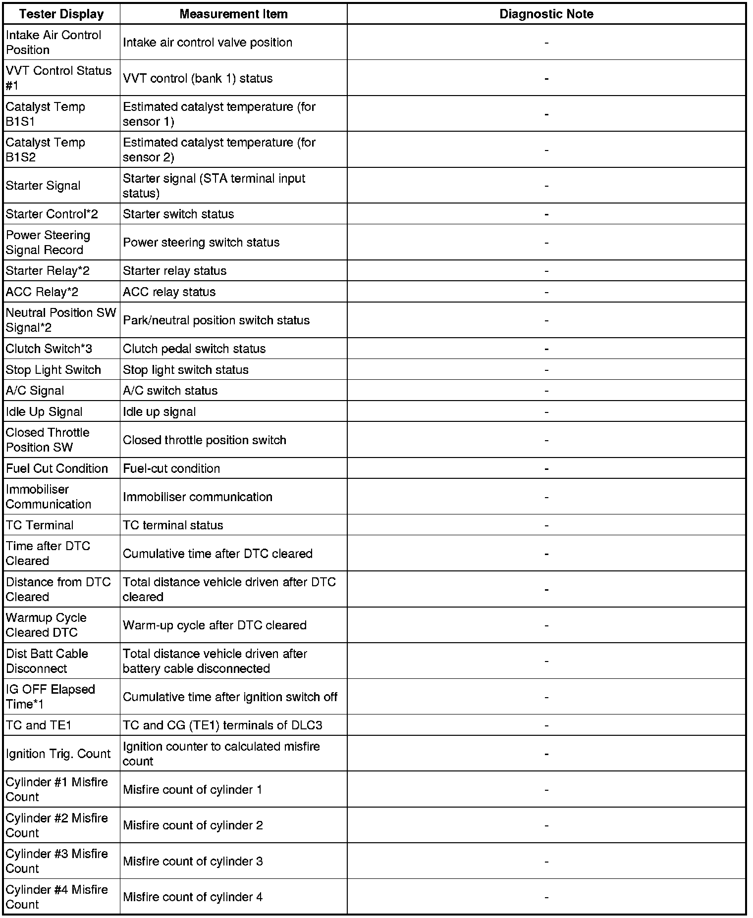 * 1 data set when the DTC is stored.