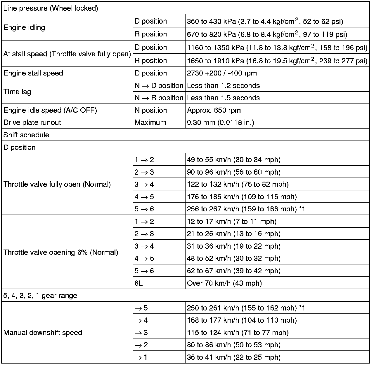 SERVICE SPECIFICATIONS: U760E AUTOMATIC TRANSAXLE: SERVICE DATA*1: Speed limiter active