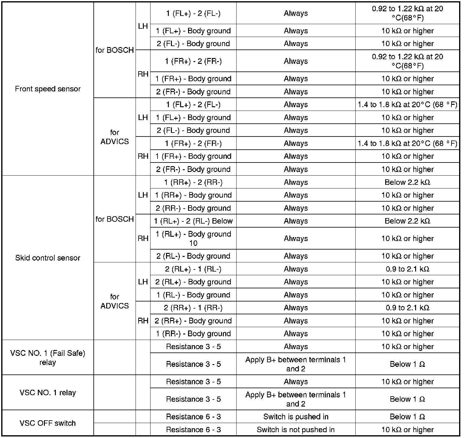 SERVICE SPECIFICATIONS: BRAKE CONTROL: SERVICE DATA