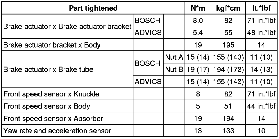 SERVICE SPECIFICATIONS: BRAKE CONTROL: TORQUE SPECIFICATIONS