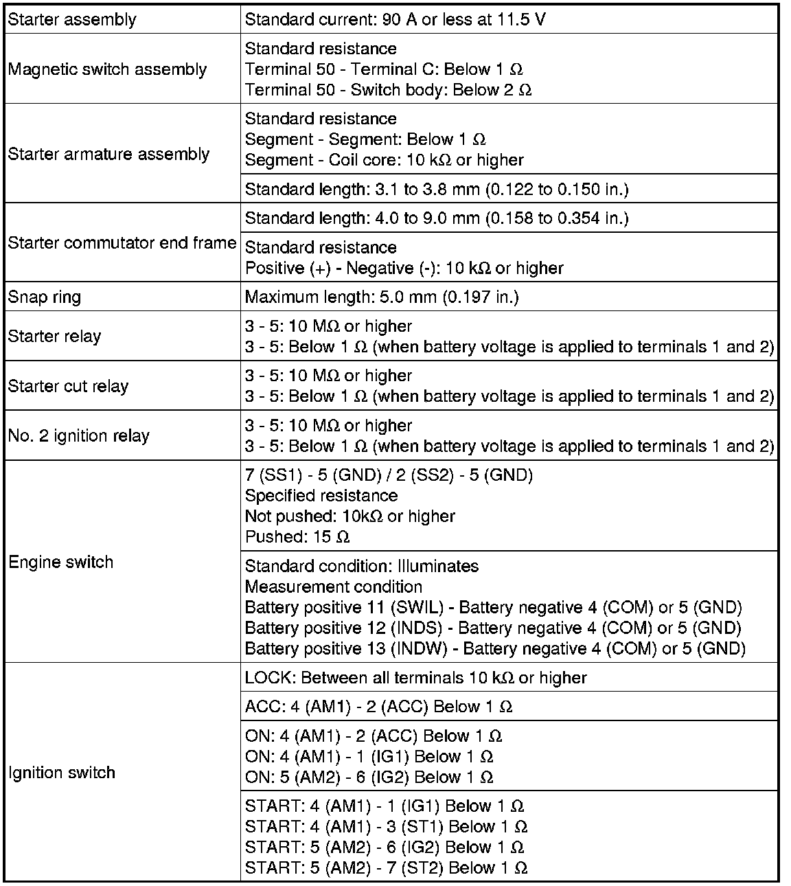 SERVICE SPECIFICATIONS: 2AR-FE STARTING: SERVICE DATA