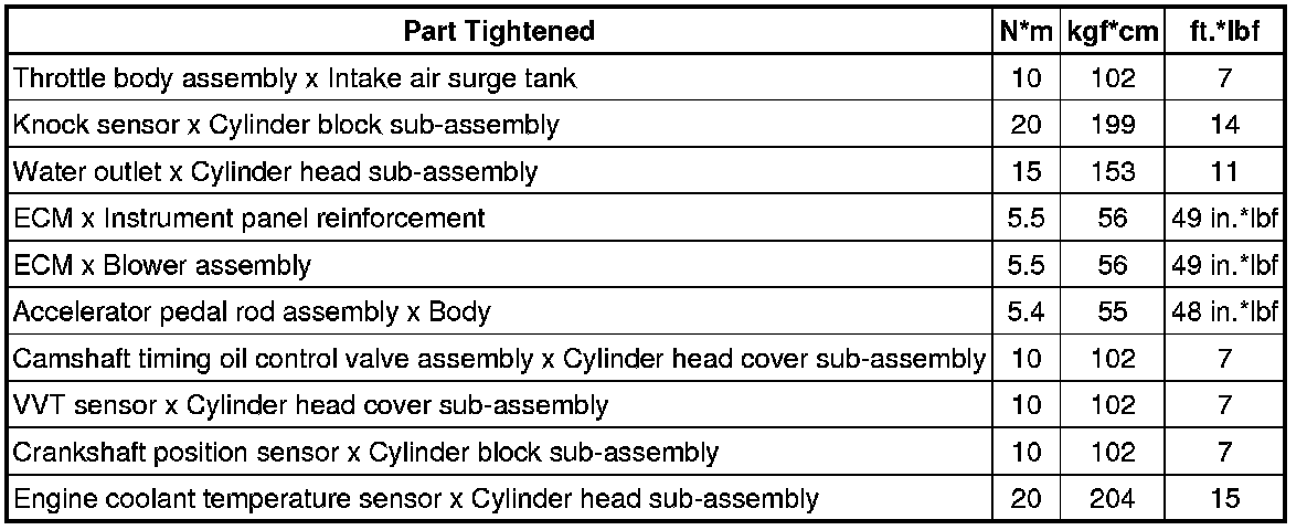 SERVICE SPECIFICATIONS: 2GR-FE ENGINE CONTROL SYSTEM: TORQUE SPECIFICATIONS