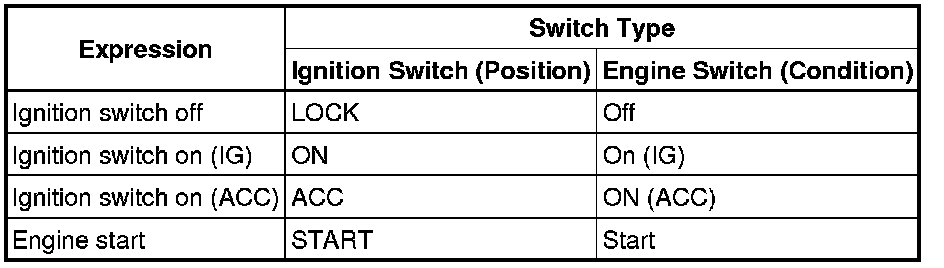The type of ignition switch used on this model differs according to the specifications of the vehicle.