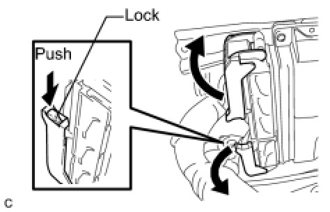 (1) Raise the 2 levers while pushing the locks on the 2 levers, and disconnect the 2 ECM connectors.