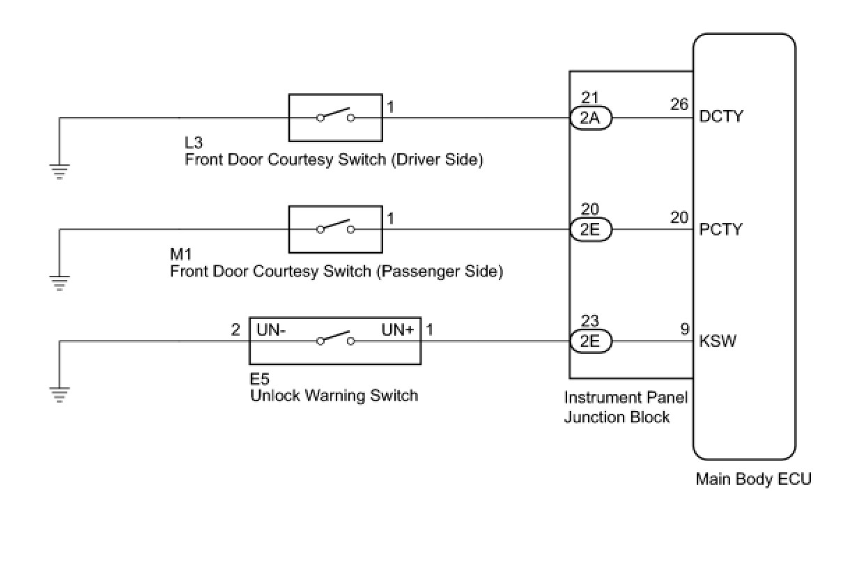 When the key is in the ignition key cylinder or the door courtesy switch ON signal is output to the main body ECU (instrument panel junction block), performing the door lock operation with the lock switch does not lock the door.