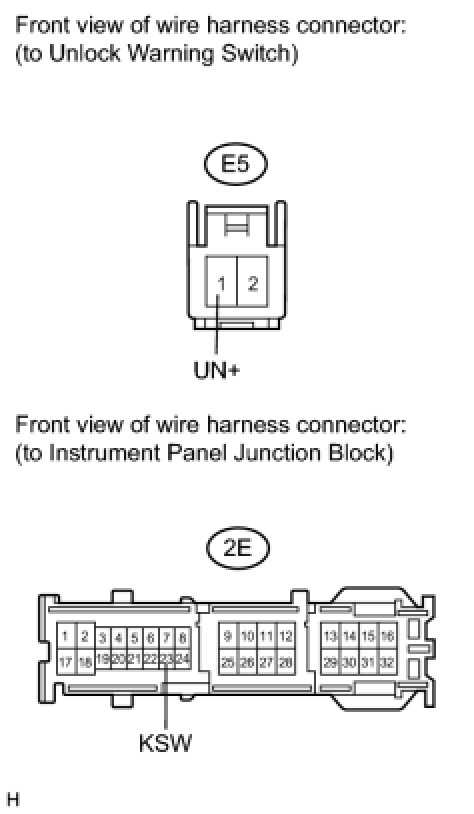 3. CHECK HARNESS AND CONNECTOR (UNLOCK WARNING SWITCH - JUNCTION BLOCK)