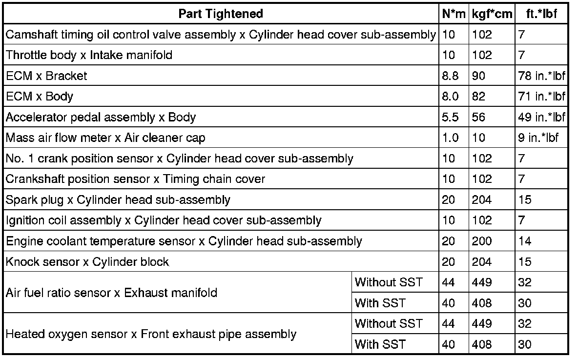 SPECIFICATIONS: 2ZR-FE ENGINE CONTROL: TORQUE SPECIFICATIONS