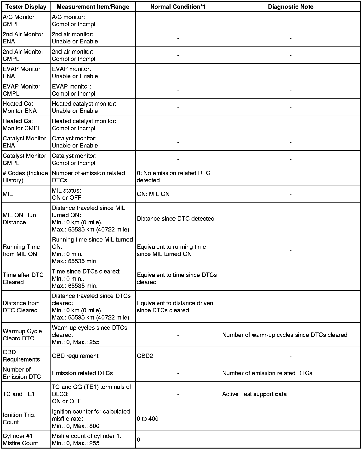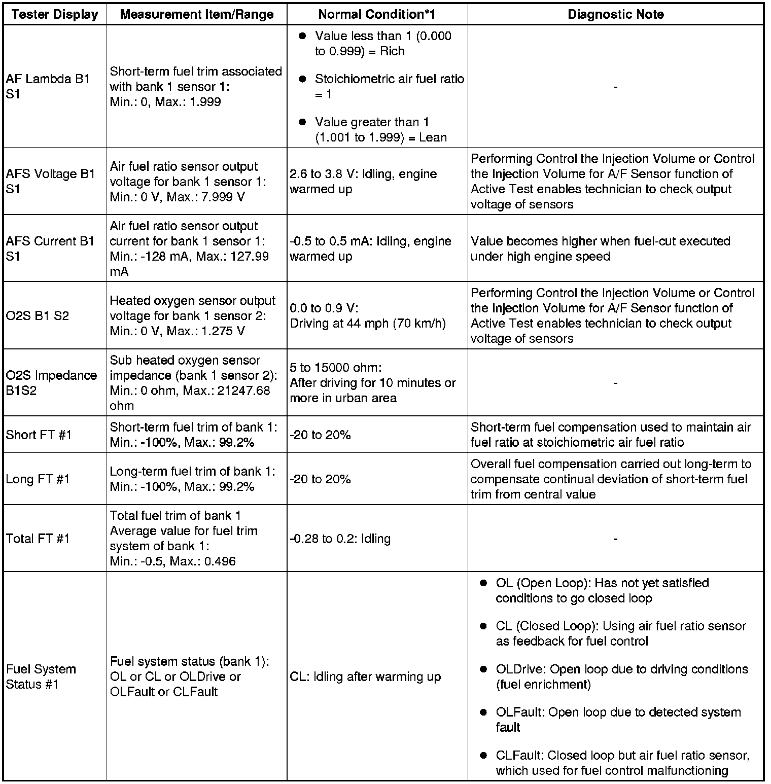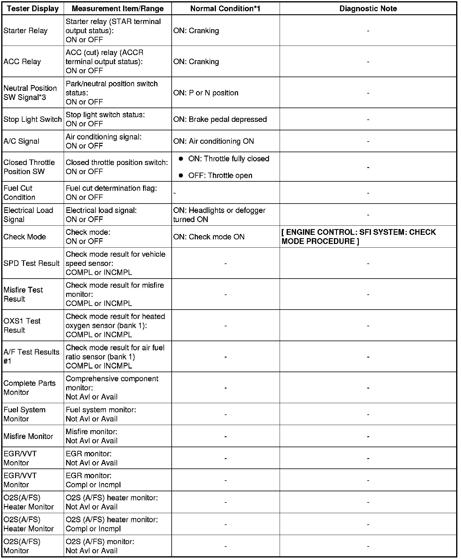 * *1: If no idling conditions are specified, the shift lever should be in N or P, and the A/C switch and all accessory switches should be off.
