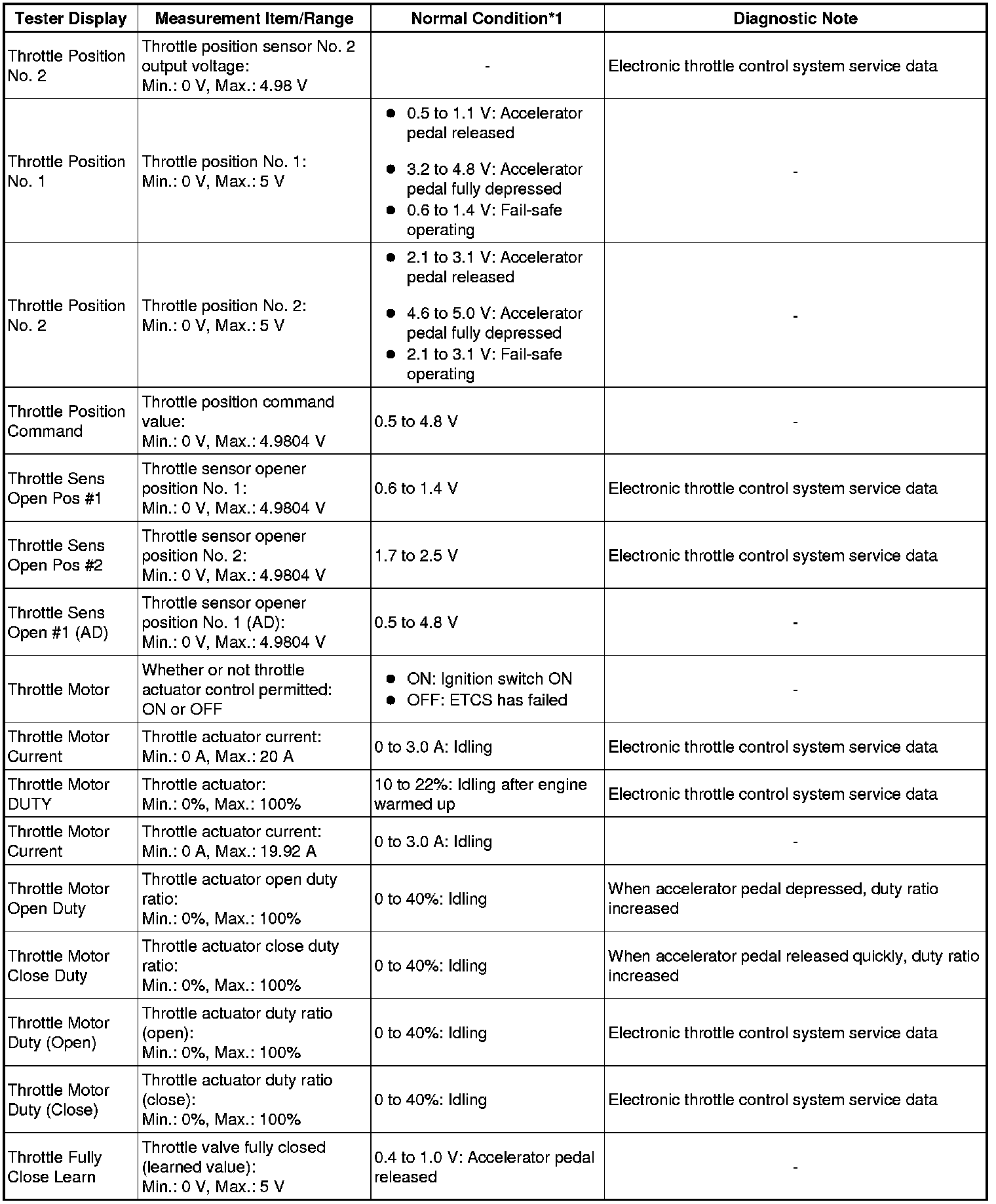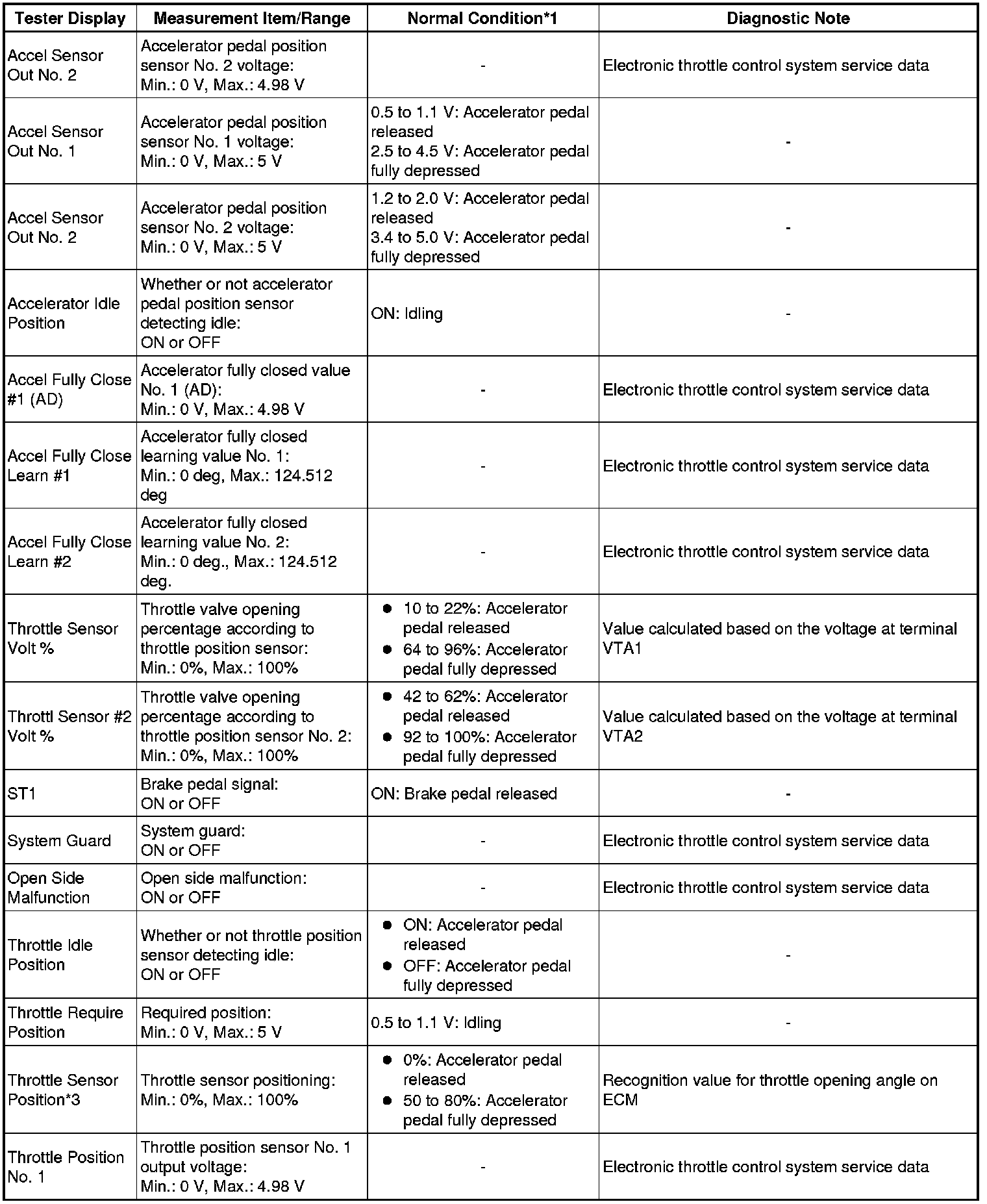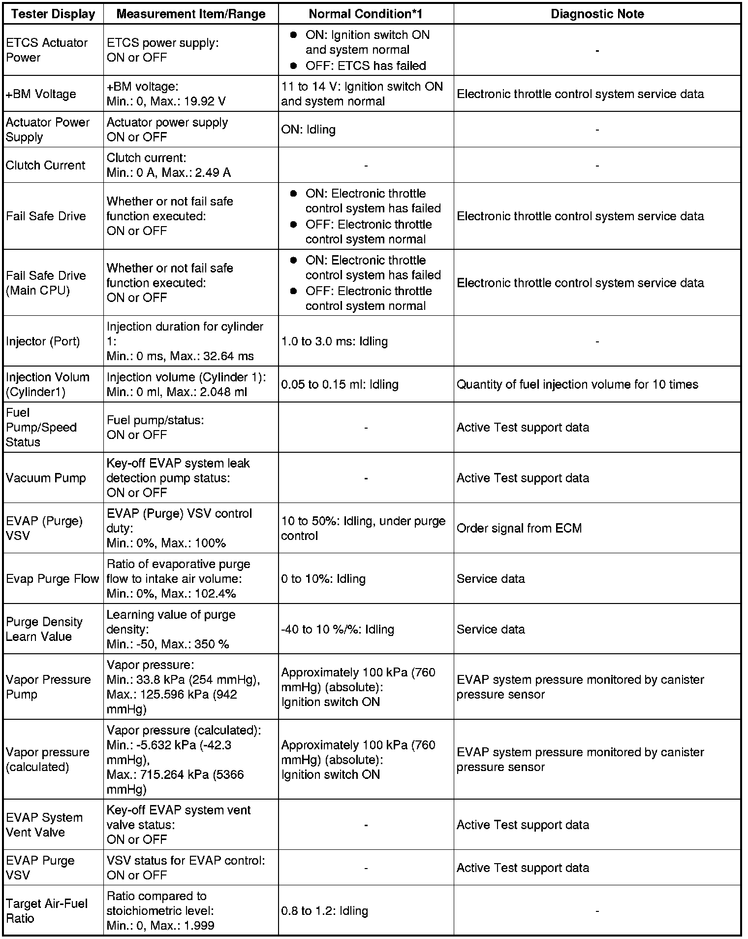 * *1: If no idling conditions are specified, the shift lever should be in N or P, and the A/C switch and all accessory switches should be off.