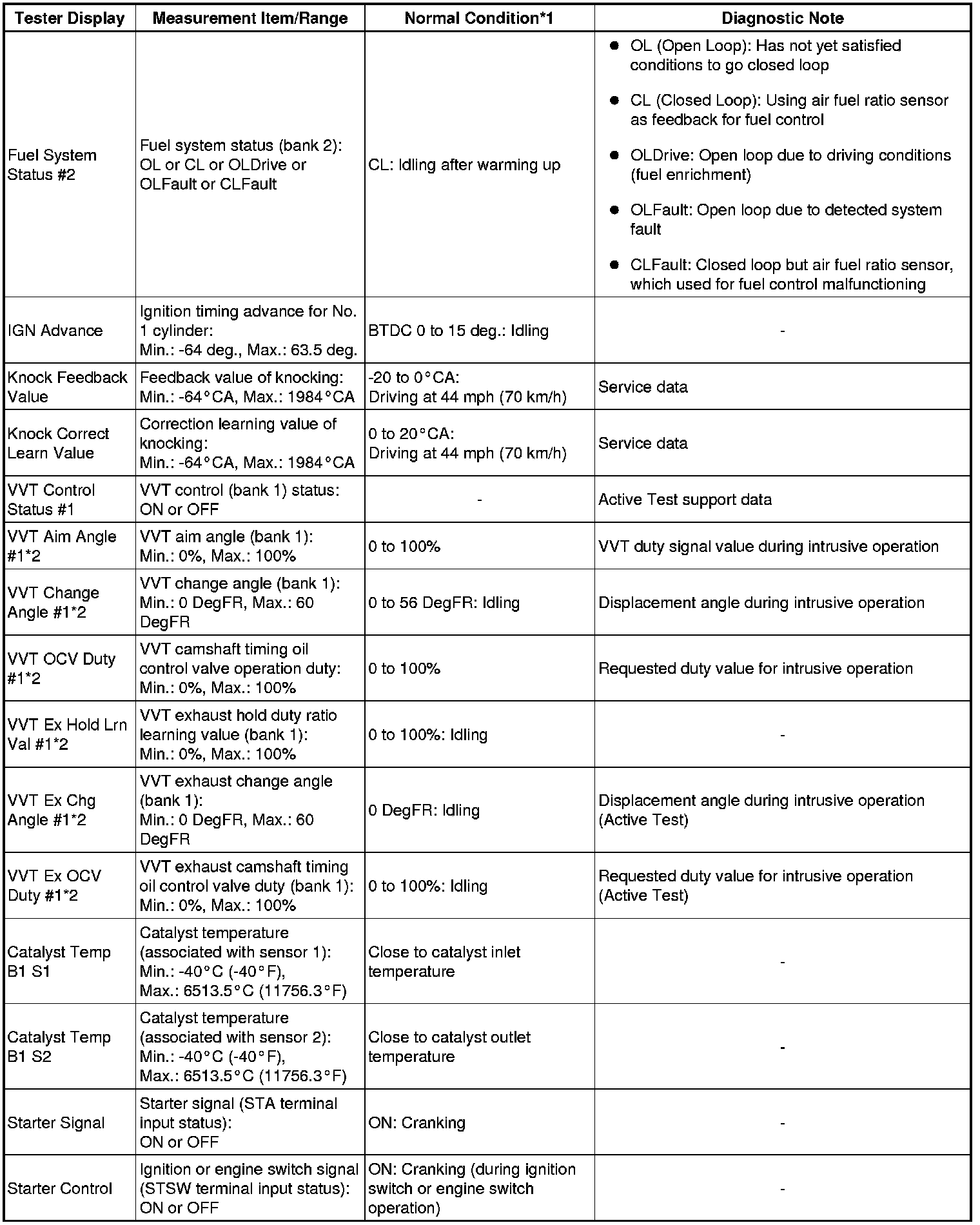 * *2: Values are only displayed when performing the Active Tests: Control the VVT Linear (Bank1). For other Active Tests, the value will be 0.