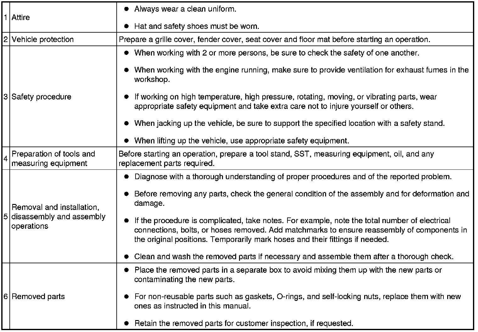 * Failure to carry out the service operations in the correct sequence could cause the SRS to unexpectedly deploy during servicing and lead to serious injury. Furthermore, if a mistake is made when servicing the SRS, it is possible that the SRS may fail to operate properly. Before servicing (including removal or installation of parts, inspection or replacement), be sure to read the following section carefully.