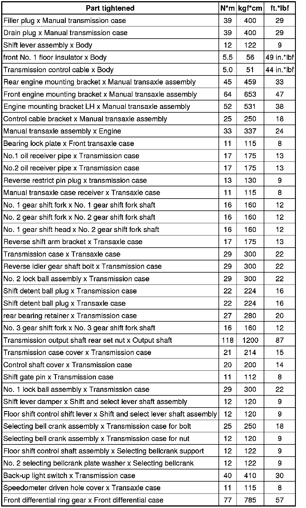 SPECIFICATIONS: C59 MANUAL TRANSMISSION / TRANSAXLE: TORQUE SPECIFICATIONS