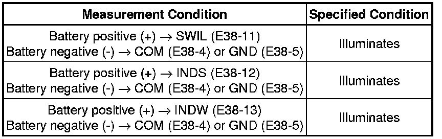 (c) Apply battery voltage between the terminals of the switch and check the illumination condition of the switch.