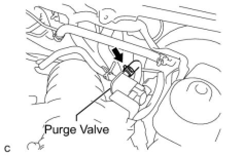 (b) Disconnect the vacuum hose from the purge valve as shown in the illustration.