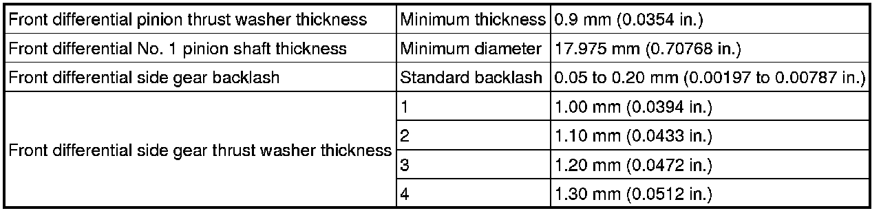 SPECIFICATIONS: E351 MANUAL TRANSMISSION / TRANSAXLE: SERVICE DATA