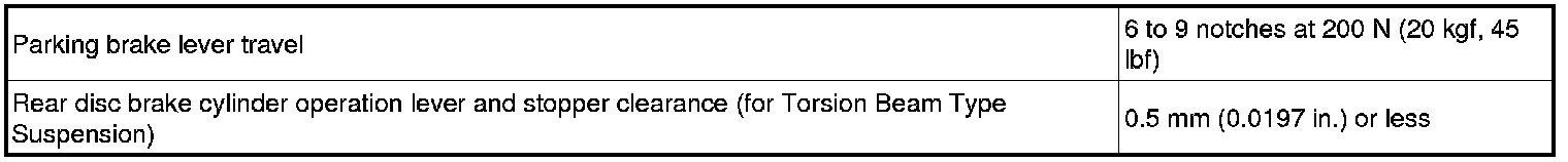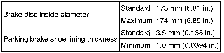 SPECIFICATIONS: PARKING BRAKE: SERVICE DATA