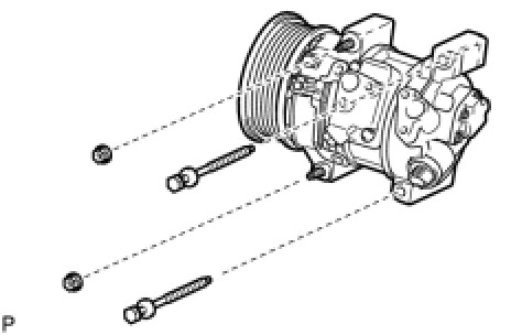 (c) Using a "TORX" socket wrench (E8), remove the 2 stud bolts and the compressor assembly with pulley.