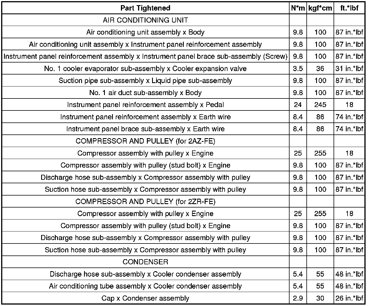 SPECIFICATIONS: HEATING / AIR CONDITIONING: TORQUE SPECIFICATIONS