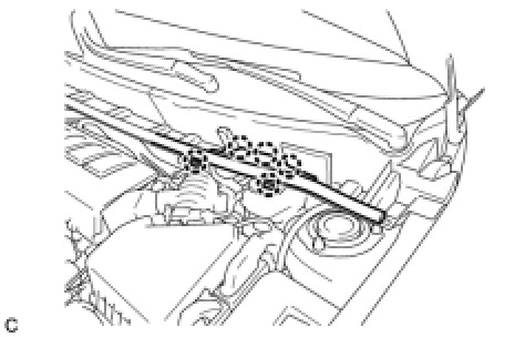 (b) Disengage the 5 claws and remove the center cowl top ventilator louver.