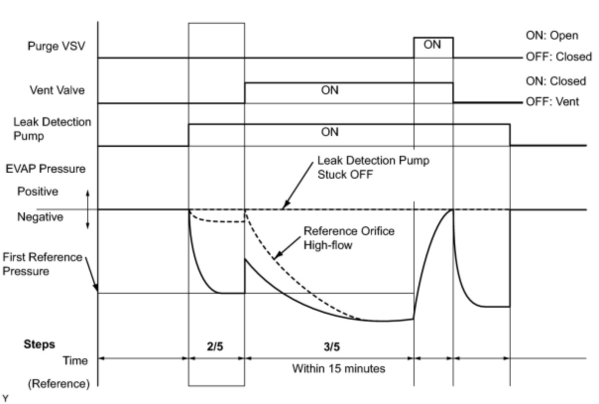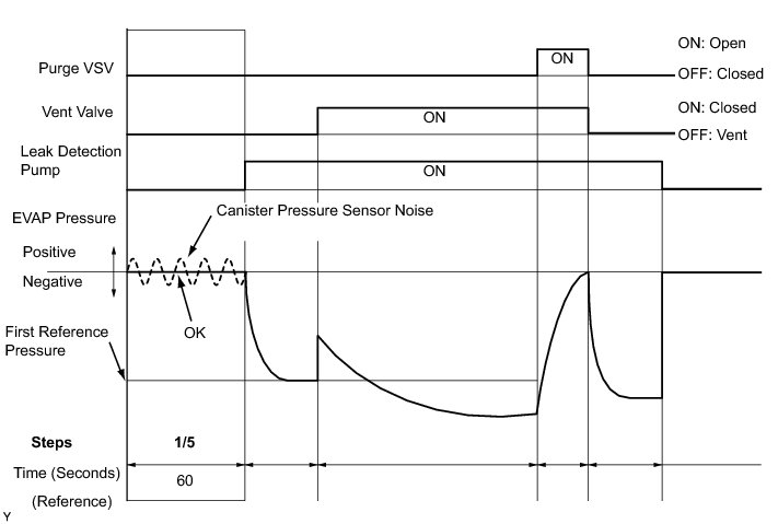 (b) Compare the EVAP pressure in step 3/5 and the second reference pressure (step 5/5).