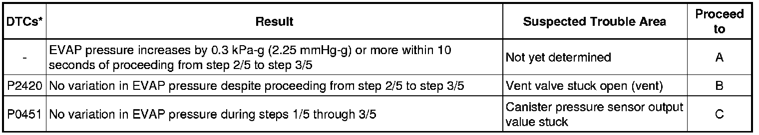 (a) Check the EVAP pressure increase in step 3/5.