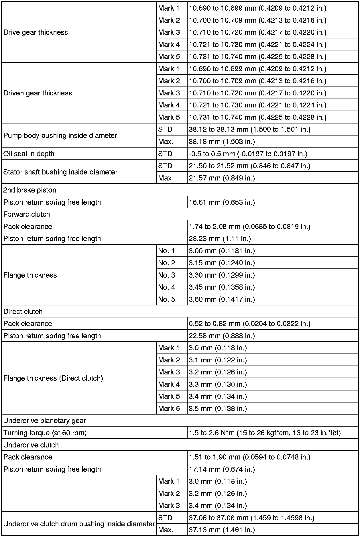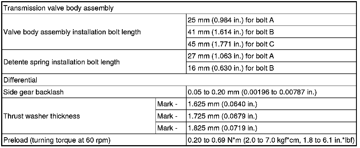 SPECIFICATIONS: U140F AUTOMATIC TRANSMISSION / TRANSAXLE: SERVICE DATA