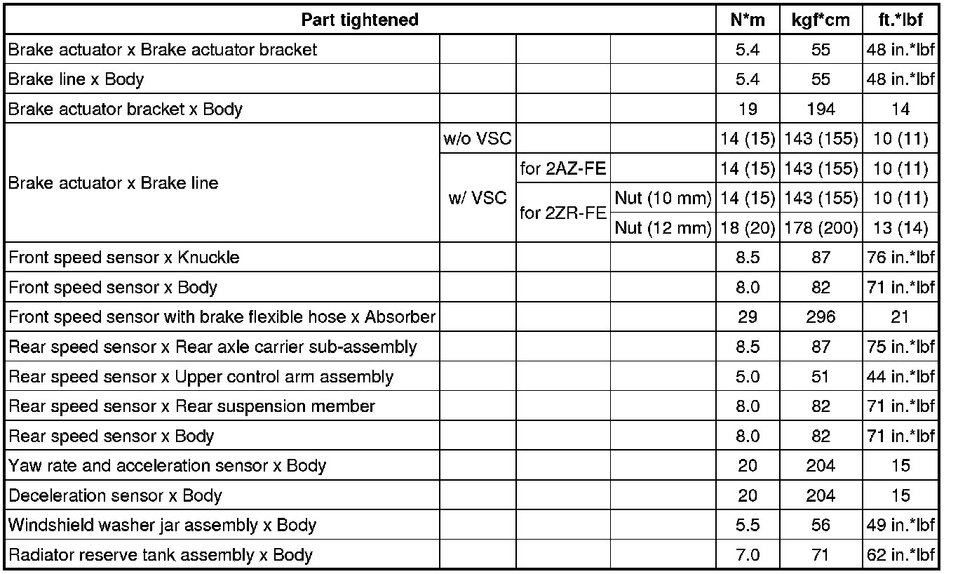 SPECIFICATIONS: BRAKE CONTROL / DYNAMIC CONTROL SYSTEMS: TORQUE SPECIFICATIONS