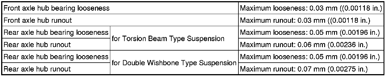 SPECIFICATIONS: AXLE AND DIFFERENTIAL: SERVICE DATA