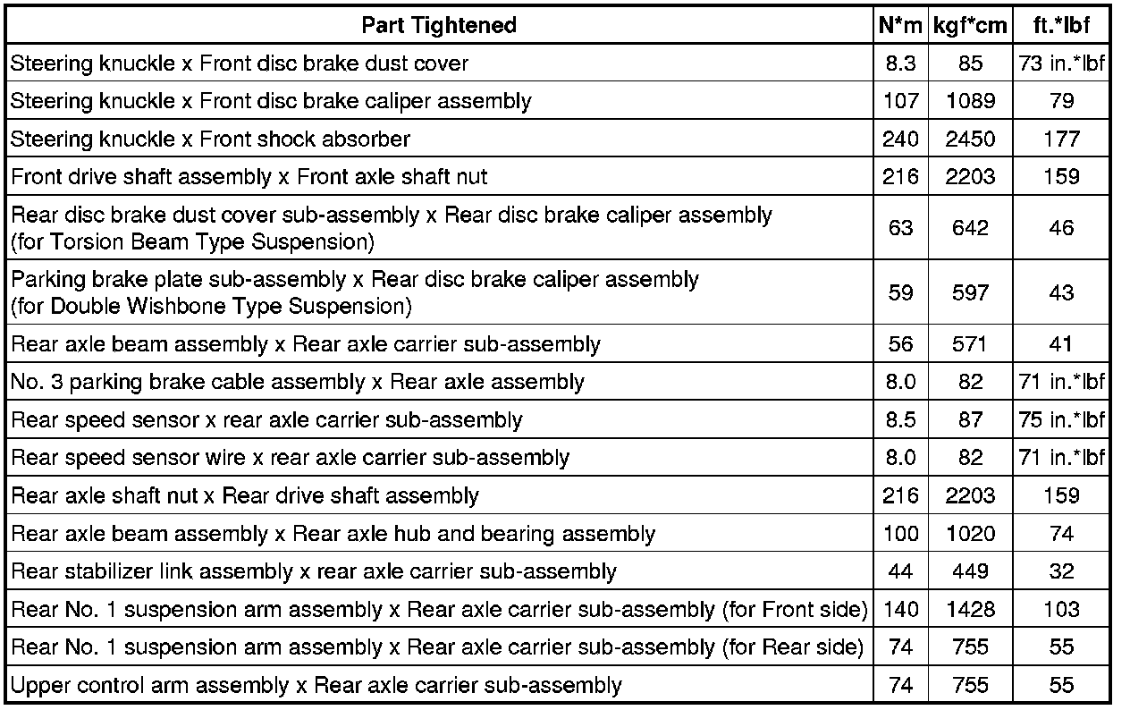 SPECIFICATIONS: AXLE AND DIFFERENTIAL: TORQUE SPECIFICATIONS