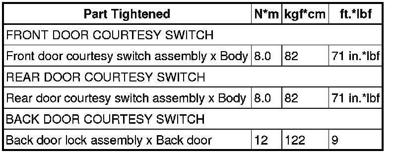 SPECIFICATIONS: LIGHTING (INT): TORQUE SPECIFICATIONS