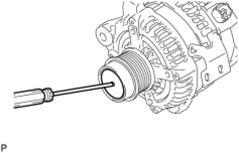 (a) Using a screwdriver, puncture the center of the generator pulley cap and pry it off.