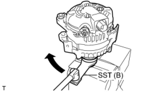(f) Loosen the pulley by turning SST (B) in the direction shown in the illustration.